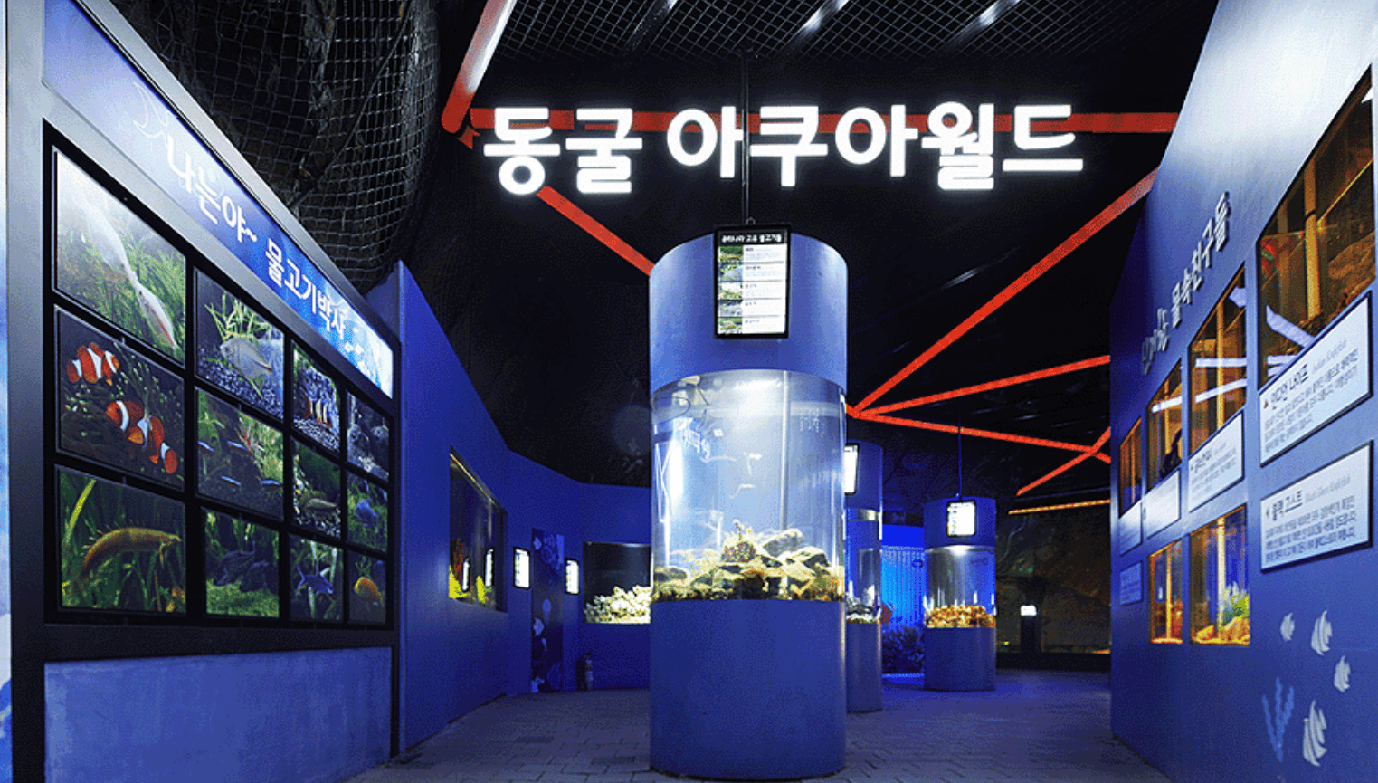 - 동굴 아쿠아월드 : 국내 최초의 동굴 내 아쿠아리움으로 다양한 물고기를 만날 수 있습니다.