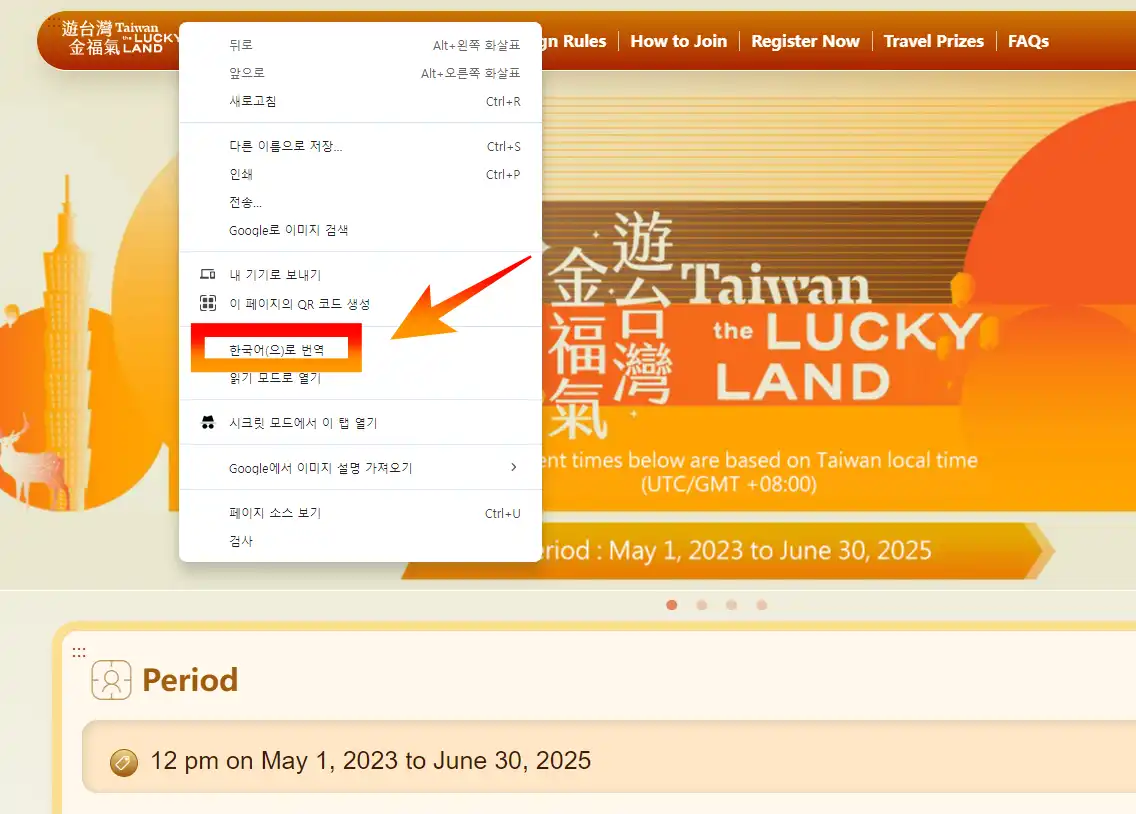 오른쪽 사진처럼 마우스 오른쪽 클릭으로 한국어 번역을 눌러 주시면 편하게 사이트를 이용하실 수 있습니다.