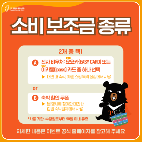 지원금은 무제한이 아니며, 2023년 25만 명, 2024년 15만 명, 2025년 10만 명에게 제공될 예정이고, 할당량을 대만 상황에 따라 변경될 수 있으니, 휴가 여행을 계획 중이시라면 지원금 지급이 가능할 때 빠르게 신청하시는 것이 여행경비를 아끼는 길입니다.